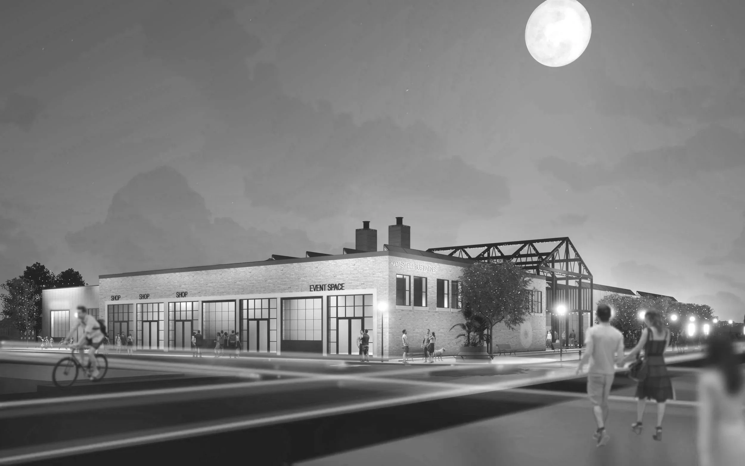 The Caswell Bus Barns is a heritage industrial building turned arts and culture hub. Constructed in several phases from 1921 to 1975 for the Saskatoon Transit System, the building operated as the repair shop for Saskatoon’s streetcars and buses. The adaptive reuse of this building is now able to foster artists, architects, musicians, actors, and the amenities that support them.